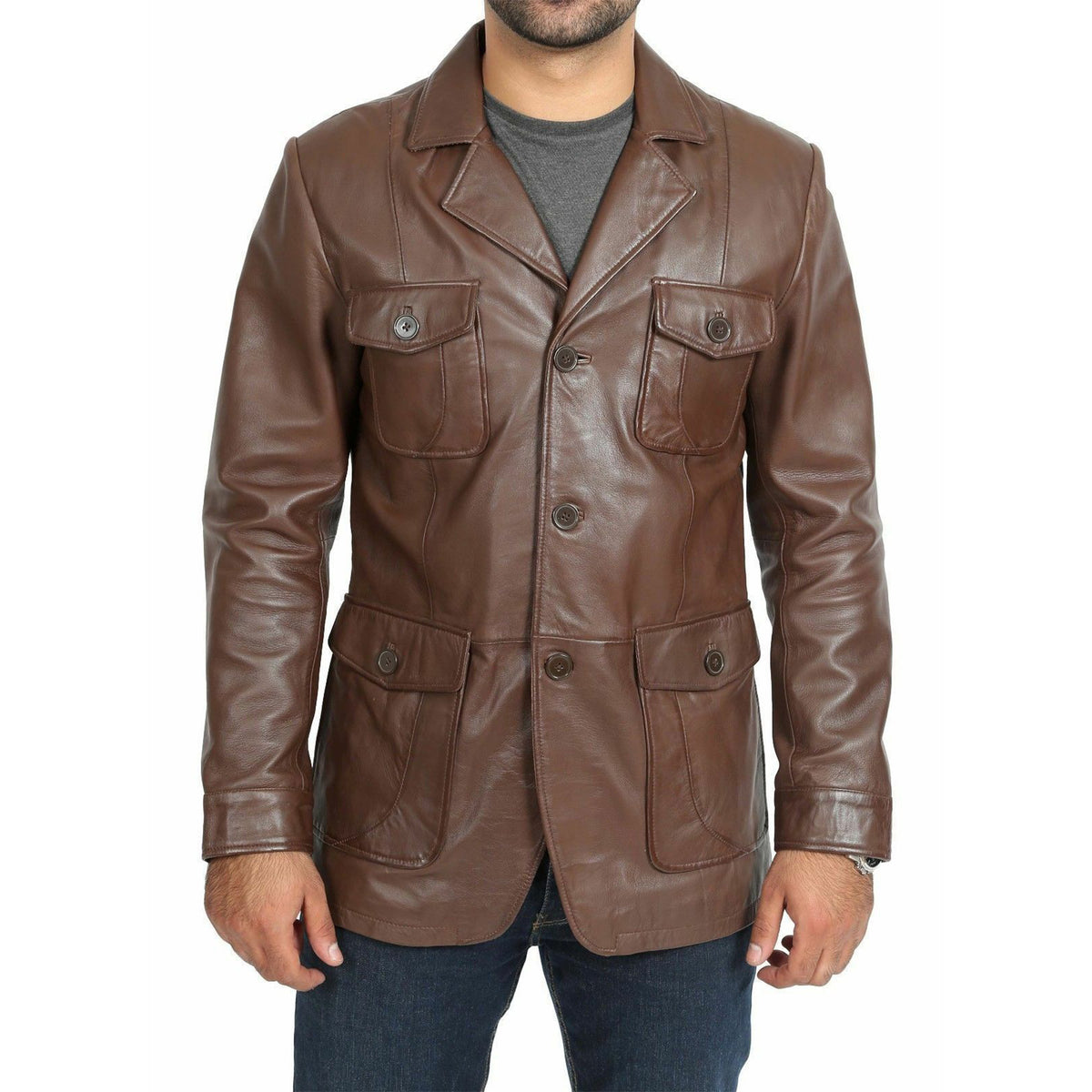 Step out in style wearing the men's brown leather blazer from Lush Gear. This classic piece is crafted from high-quality...