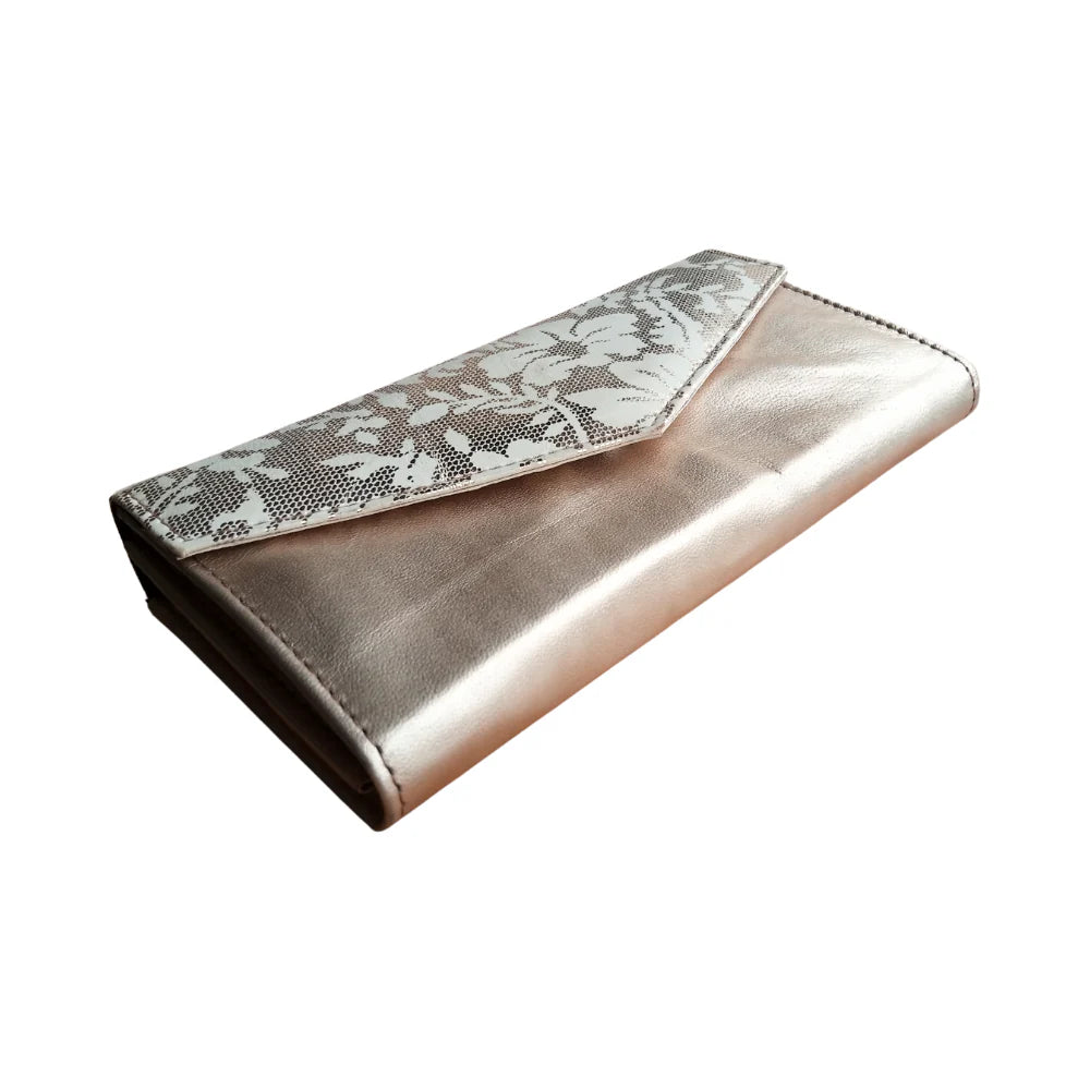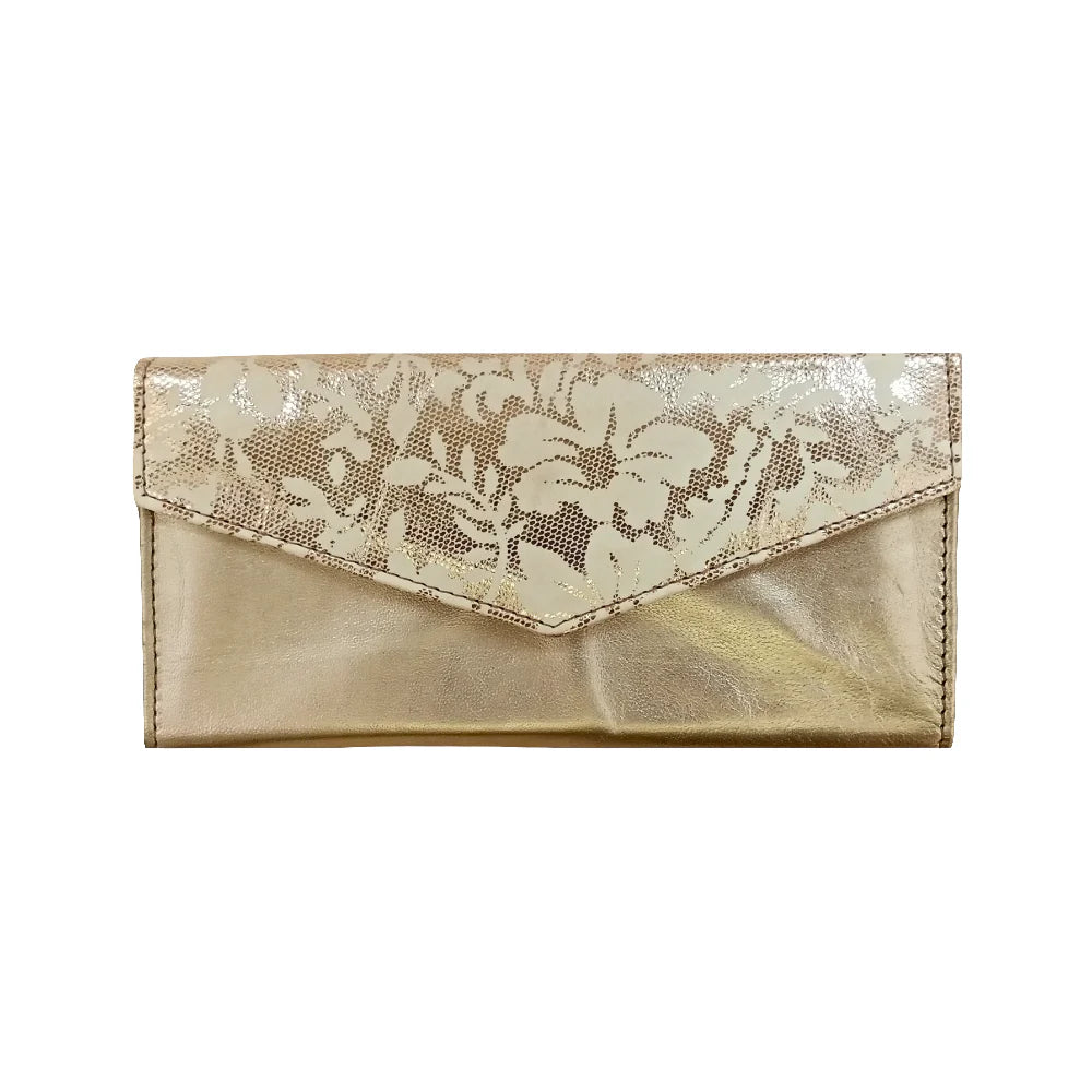 Inform when this item available Pearl Leather Clutch Bag with Flower Printed Flap